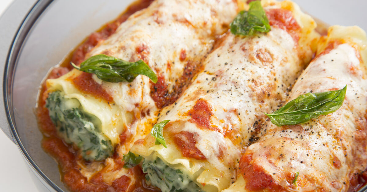 Συνταγή για κανελόνια φούρνου με σπανάκι μπέικον και τυριά